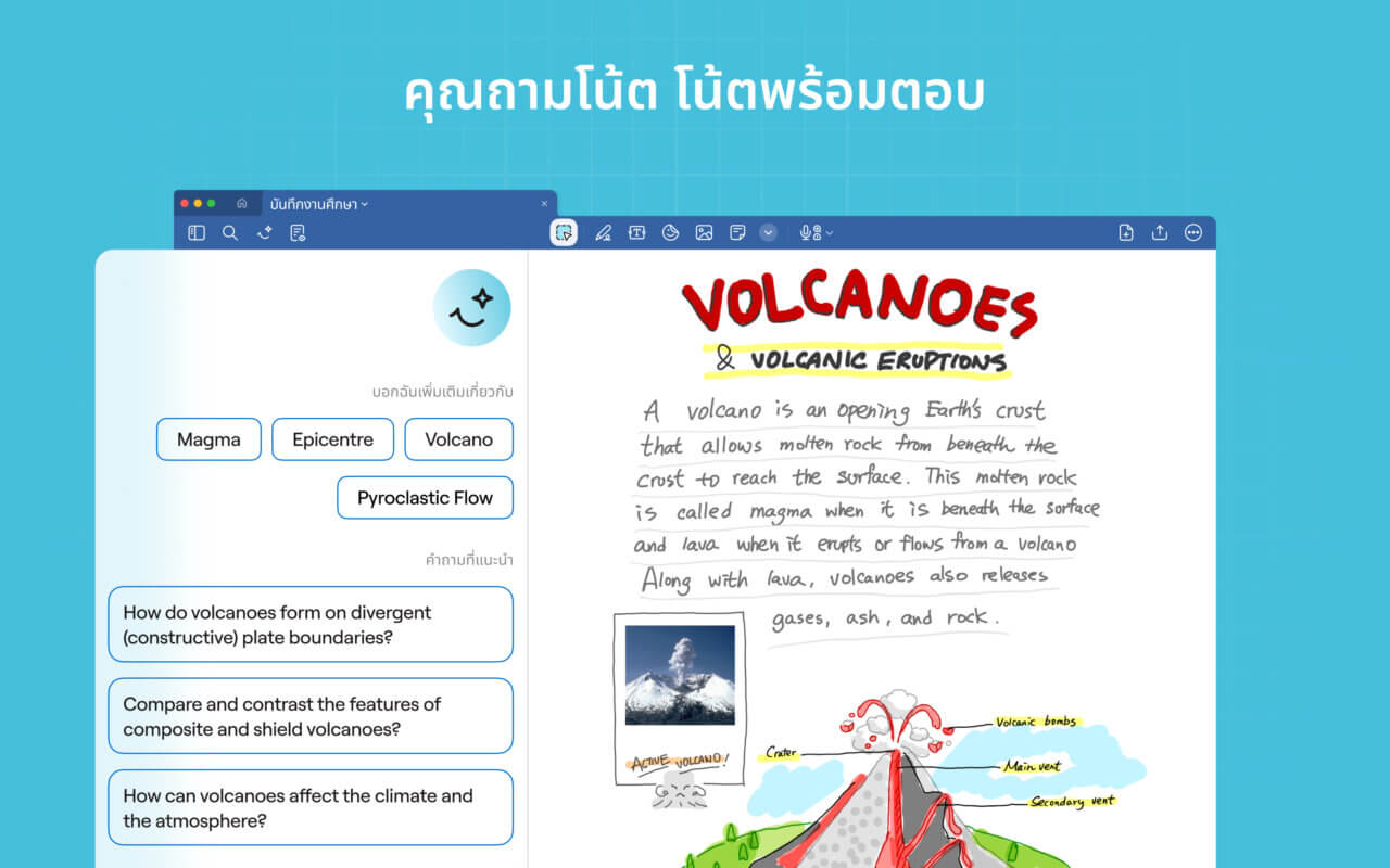 Goodnotes AI ทำงานร่วมกับการป้อนข้อมูลทุกรูปแบบอย่างไร้รอยต่อ ไม่ว่าจะเป็นการเขียนด้วยลายมือ การพิมพ์ การสเก็ตช์ หรือเสียง จึงมีความสามารถพิเศษในการช่วยคุณจัดระเบียบ วิเคราะห์ และต่อยอดไอเดียอย่างแท้จริง Goodnotes AI เป็นพาร์ทเนอร์ที่จะช่วยเหลือผู้ใช้งานและทำงานร่วมกัน ไม่ว่าจะอยู่ที่ใดและทำงานอย่างไรใน Goodnotes